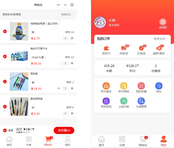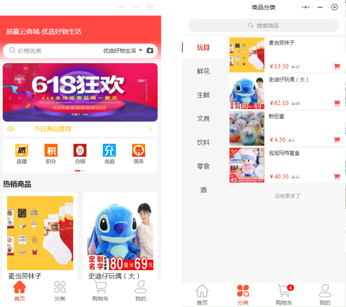 灵活的自定义模板,让商城更具唯一性与独特性,图片广告、橱窗展示、商品分类等多板块多风格自由搭配,轻松搭建个性商城店铺